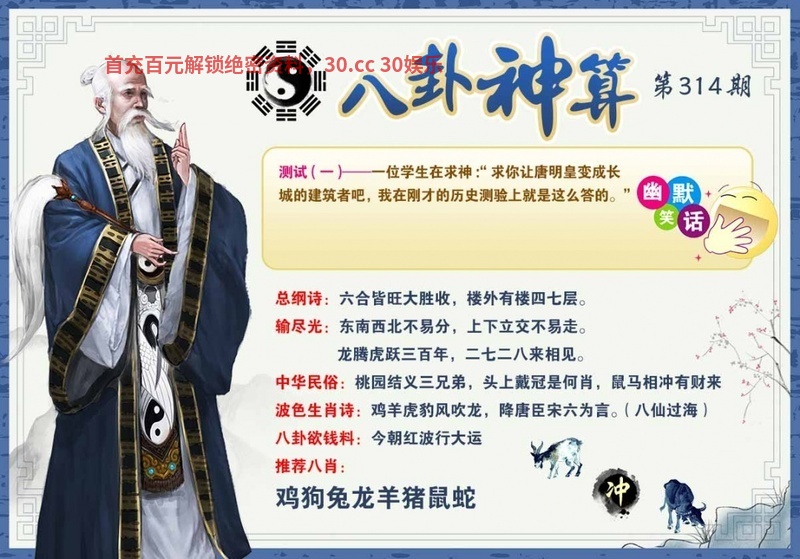 | 314期:九肖 | 猪猴狗虎马蛇牛兔羊 | 羊23中 |