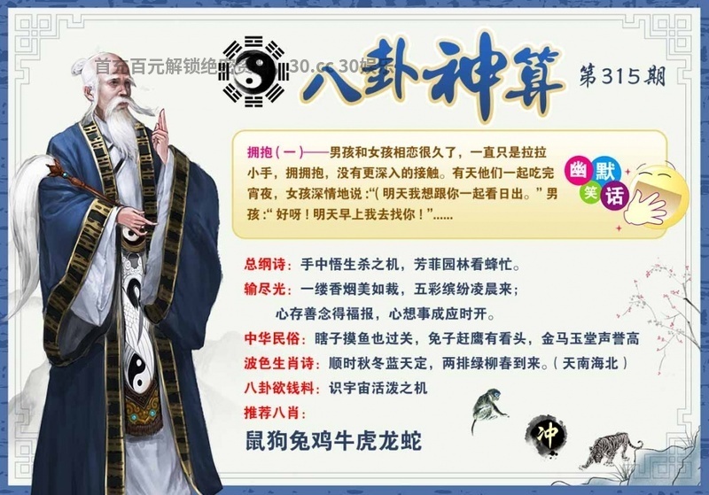 | 315期:绝杀两肖【兔羊】开:虎04准 |